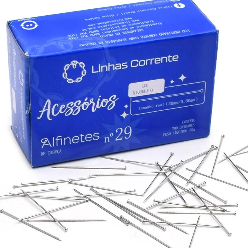 O alfinete tem 29mm de comprimento e é utilizado para marcação em costuras e trabalhos manuais em geral.