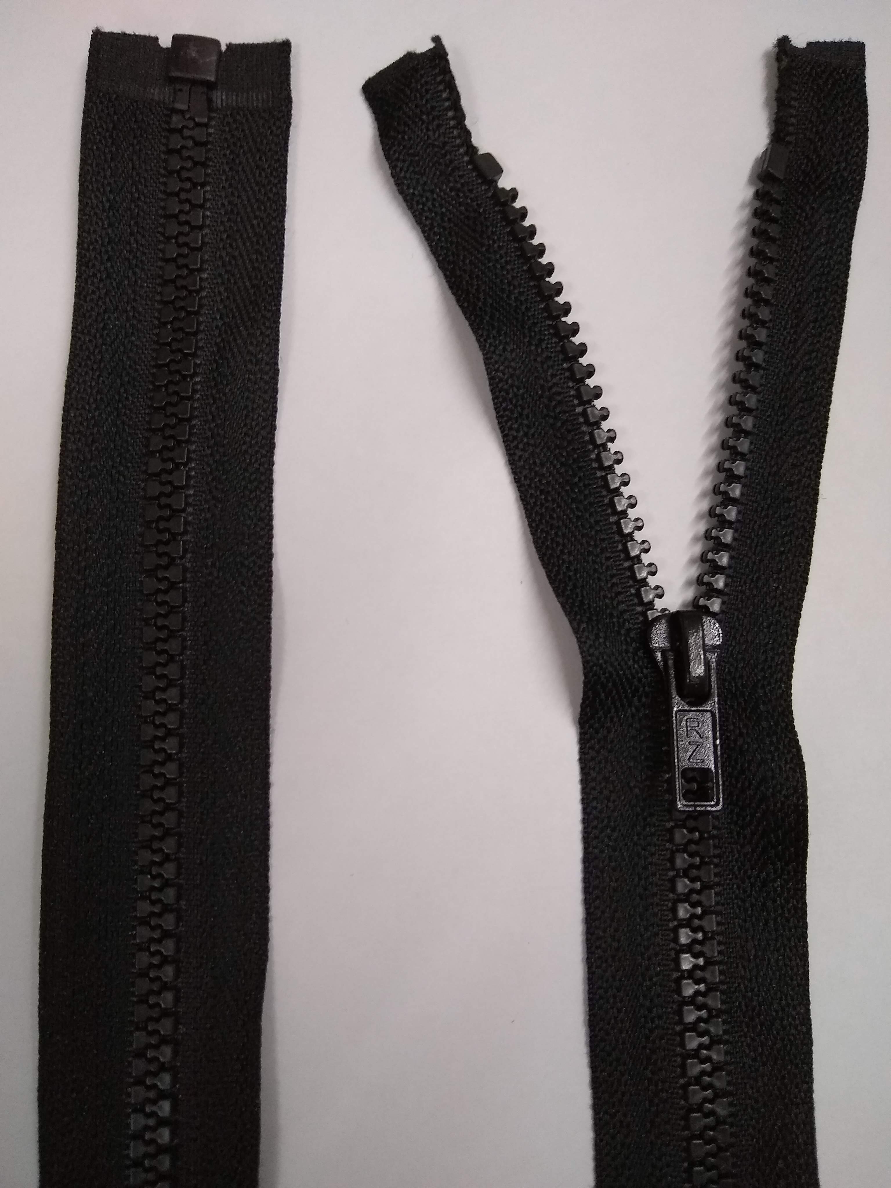 Zíper de vislon grosso destacável. Muito usado em moda esporte, surf, beach e streetwear, pois os dentes em plástico injetado são resistentes à corrosão marítima.